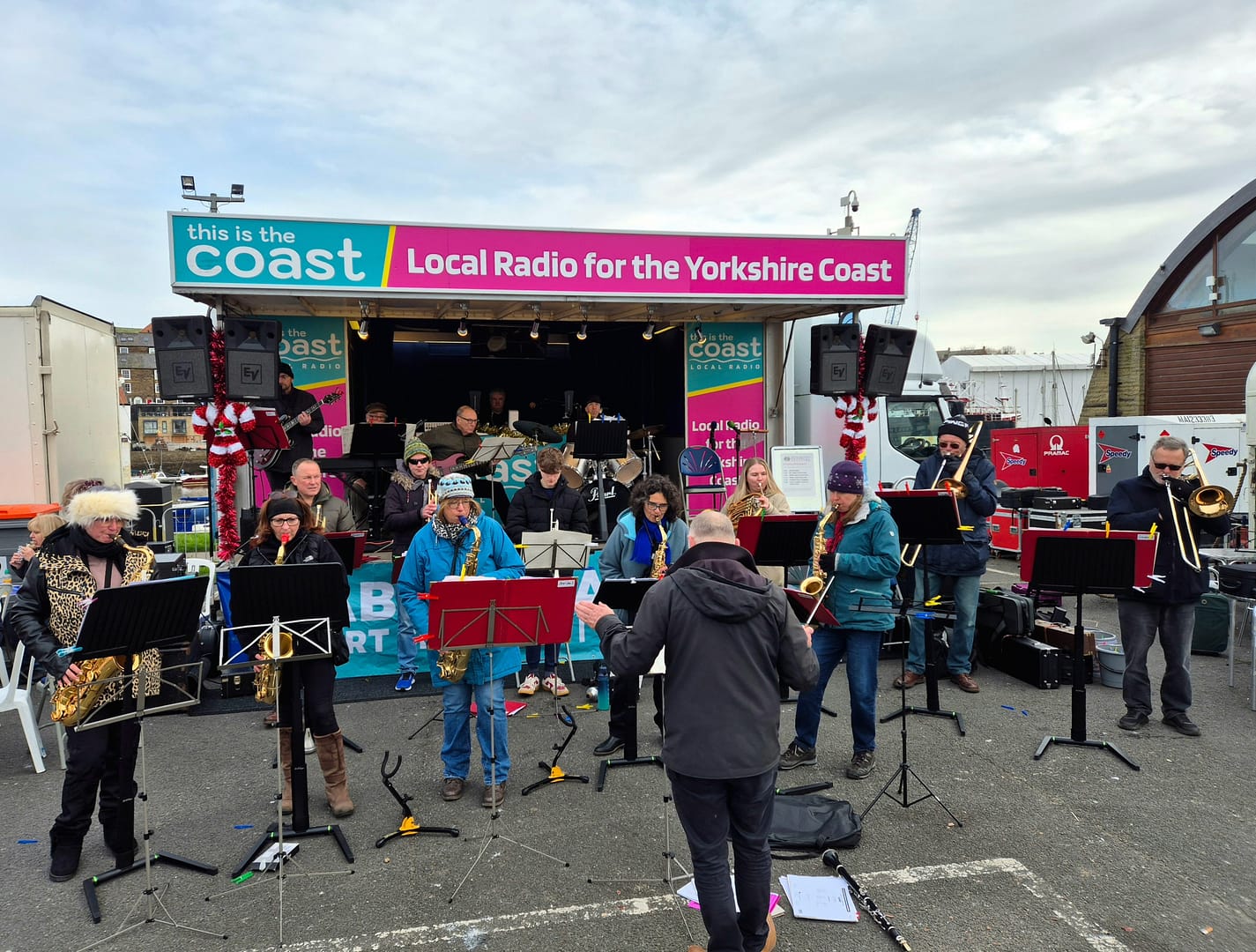 Whitby Area Concert Band, Esk Valley Big Band and concert band were invited recently to play at Whitby’s Christmas Market on a very cold Sunday 17th November morning! Here are a few photos from the event kindly provided by Gary – looking forward to next year!
